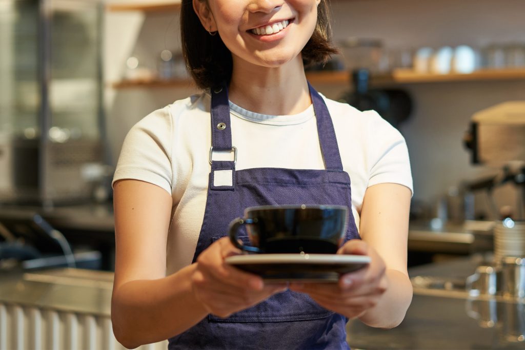 お客様はお店からの料理提供可能通知を受け取った後、カウンターにて料理を受け取り、お食事をお楽しみいただけます。