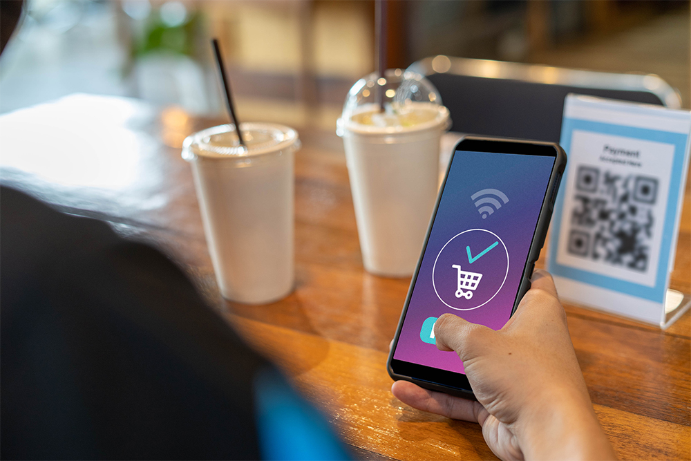 お客様はお食事後、スマホで支払いを完了します。支払い完了後、店側のiPadで支払い完了の通知が届きます。